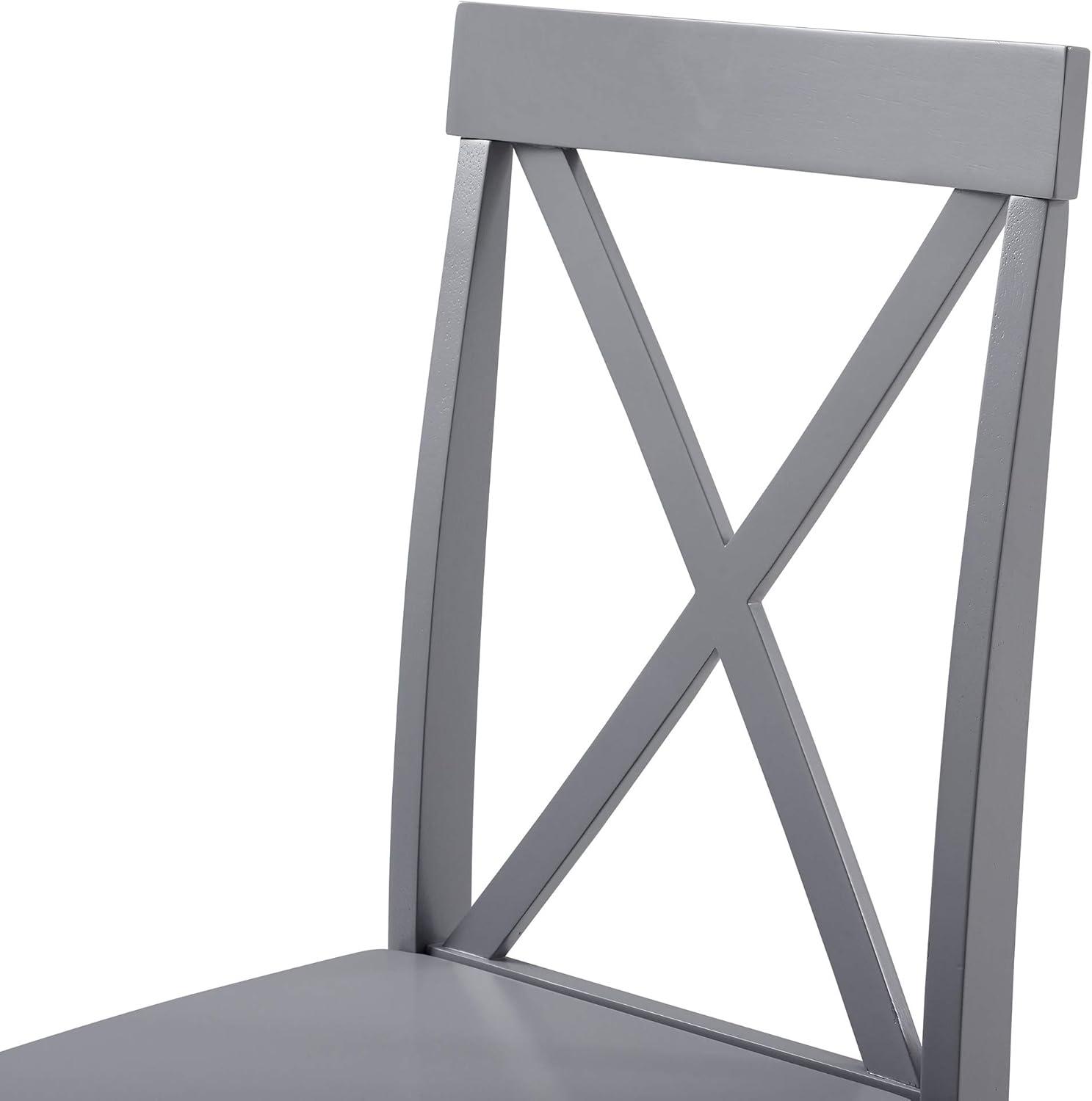 Simple with just the right amount of farmhouse flair, this 5-piece dining set is the best solution for a small space living situation. Its cozy dimensions make it a great fit for apartment kitchens as well as craft corners, game rooms, or breakfast nooks. The four solid wood chairs feature a dynamic X-back design with a slight curve for extra comfort while the solid wood table is clean, sturdy and stylistically versatile.