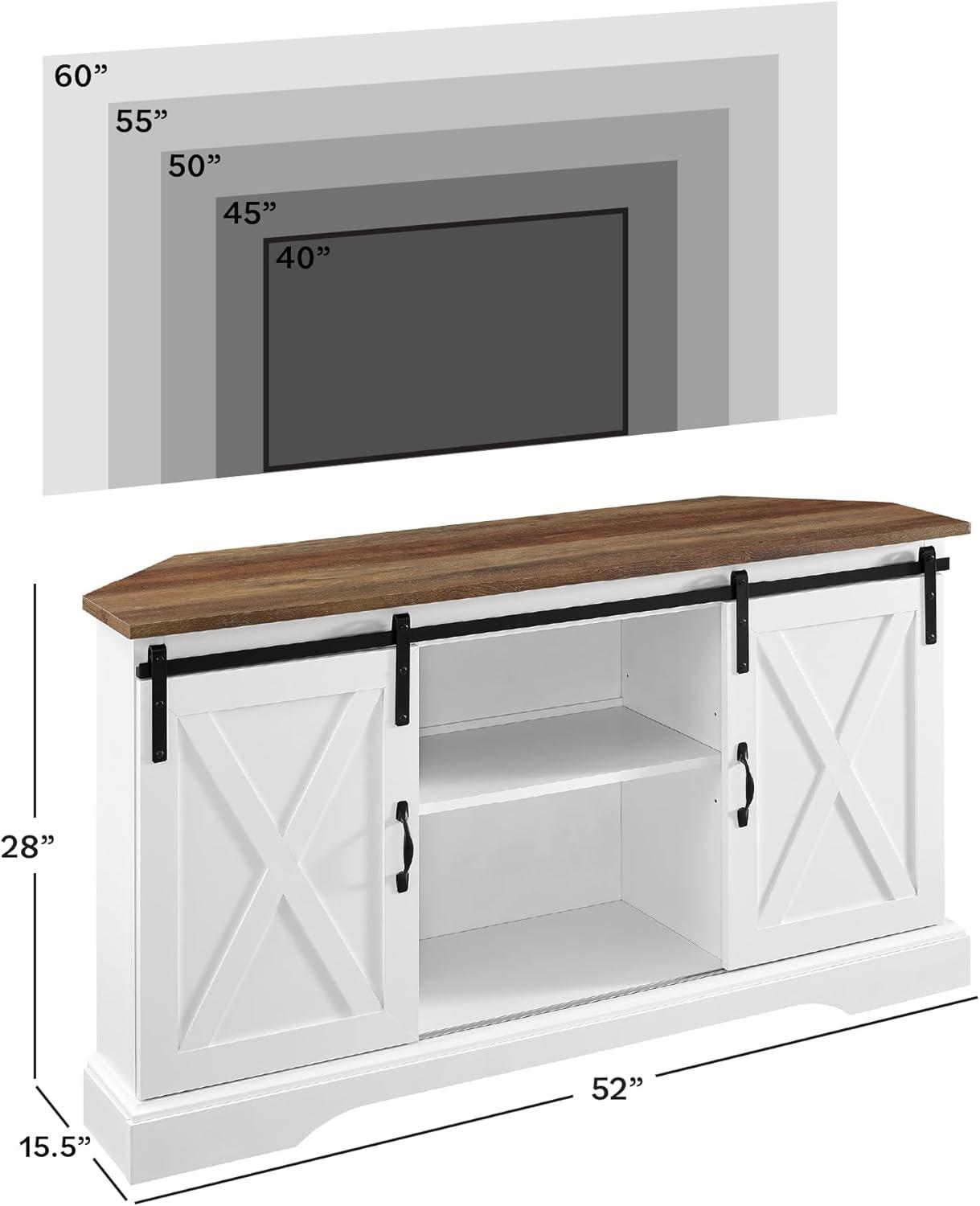 Walker Edison Everette Modern Farmhouse Double Sliding X Barn Door Stand for TVs up to 58 Inches, 52 Inch, Traditional Brown and White Oak(Reclaimed Barnwood and Solid White)