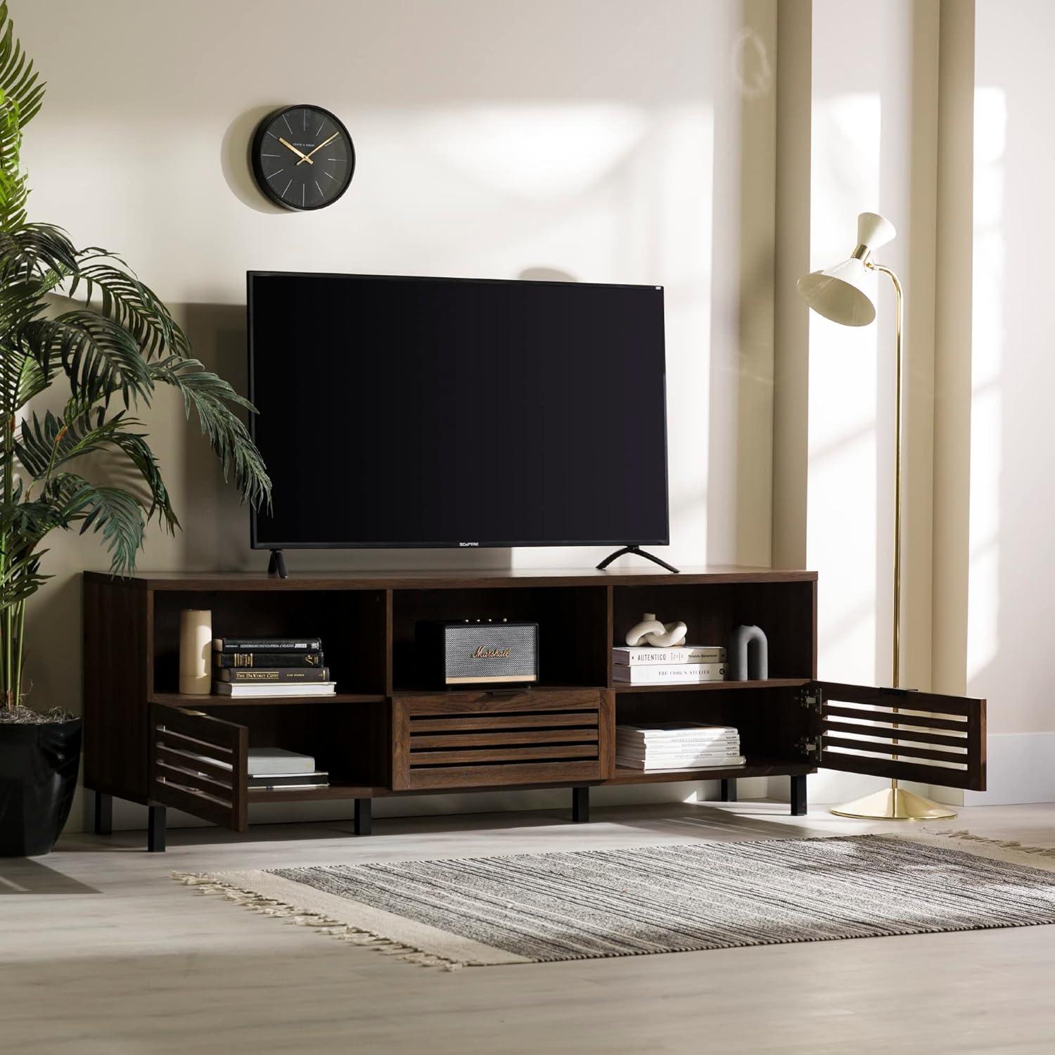 Walker Edison Modern Slatted Wood TV Stand for TV’s up to 80″ Universal TV Stand for Flat Screen Living Room Storage Cabinets and Shelves Entertainment Center, 70 Inch, Dark Walnut(Dark Walnut)
