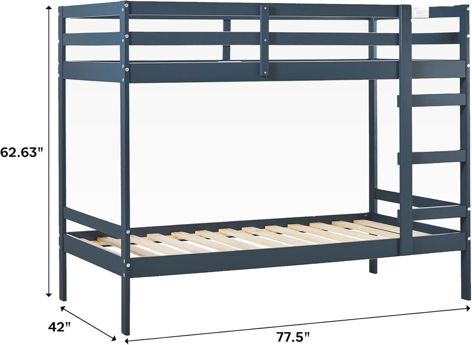 Send your kids off for sweet dreams with this twin-over-twin bunk bed frame. This piece’s small-space-friendly design is perfect for rented spaces and forever homes alike. The responsibly sourced, solid wood build features integrated guardrails and a sturdy ladder built to keep your little ones safe. Each bed includes wood support slats so you can get rid of the bulky box springs. The lifted design allows for extra under-bed storage if you need even more space for toys and games.