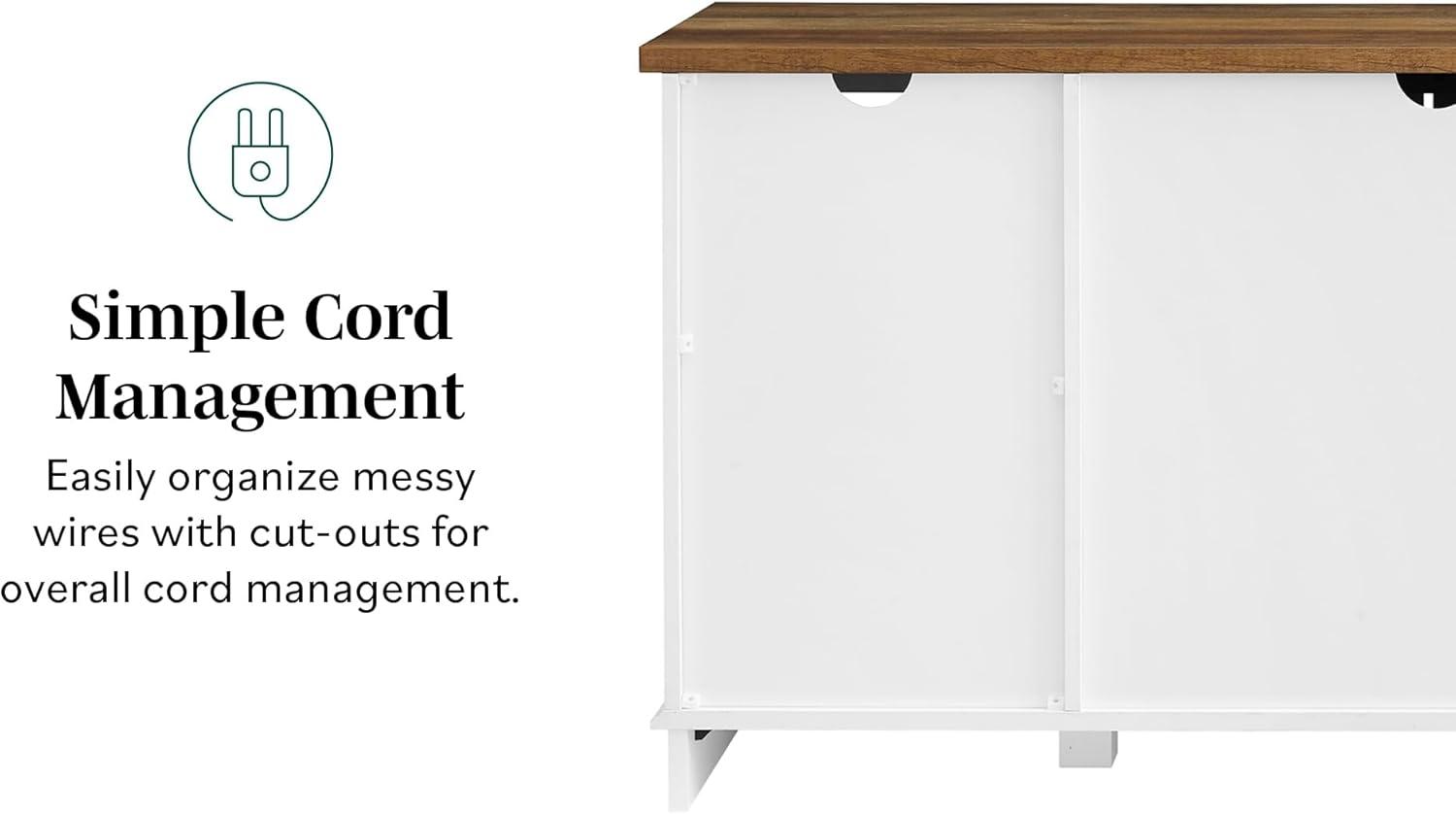 This TV stand will give your living room a charming country feel, while also providing plenty of storage space for your electronics and décor. Featuring two sliding barn door styled cabinet fronts for a versatile design where you can either close off the middle or both sides, depending on your needs. Adjustable shelving and cable management make it simple for you to keep your electronics in one place. This media console is constructed of high-grade MDF. The modern farmhouse style of this entertainment center will become a piece in your living room you’ll admire.