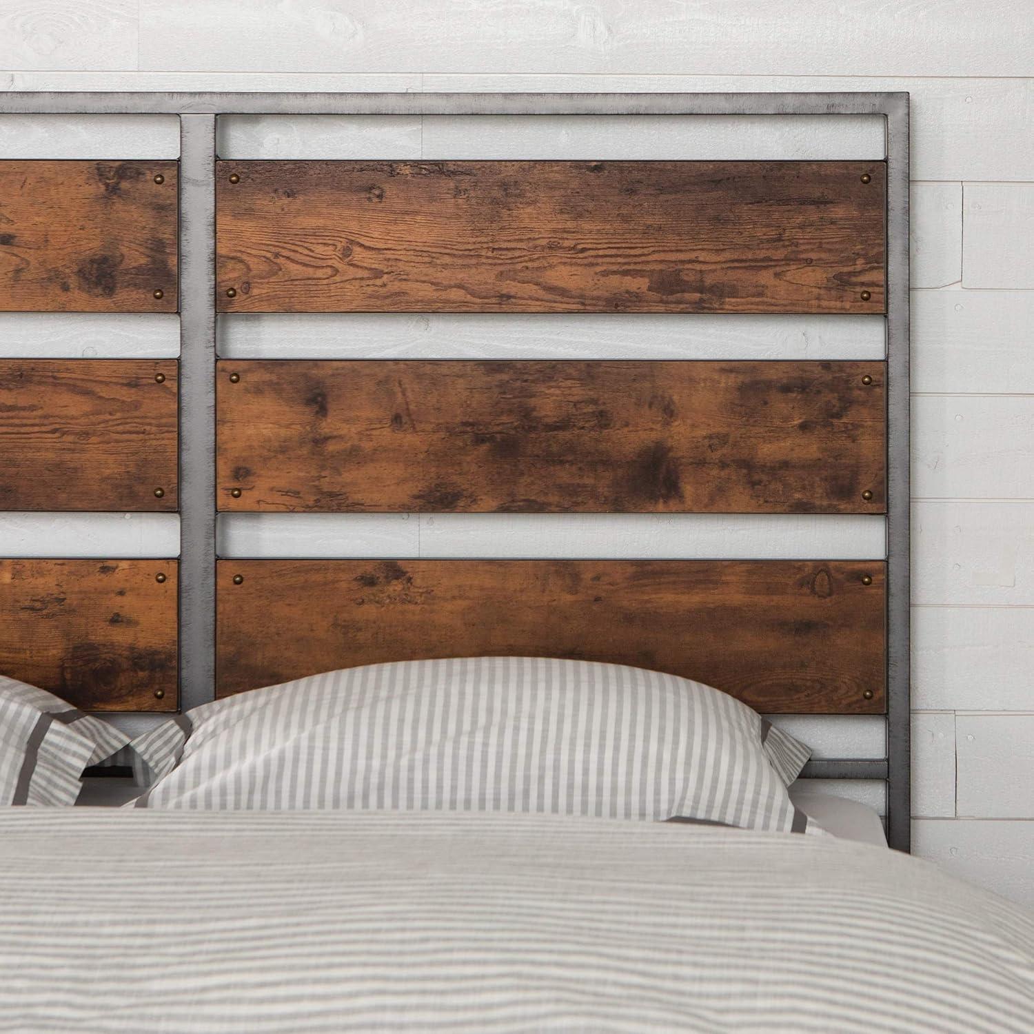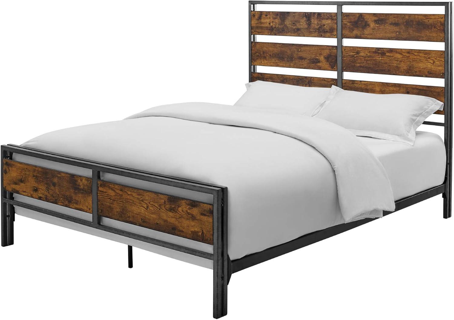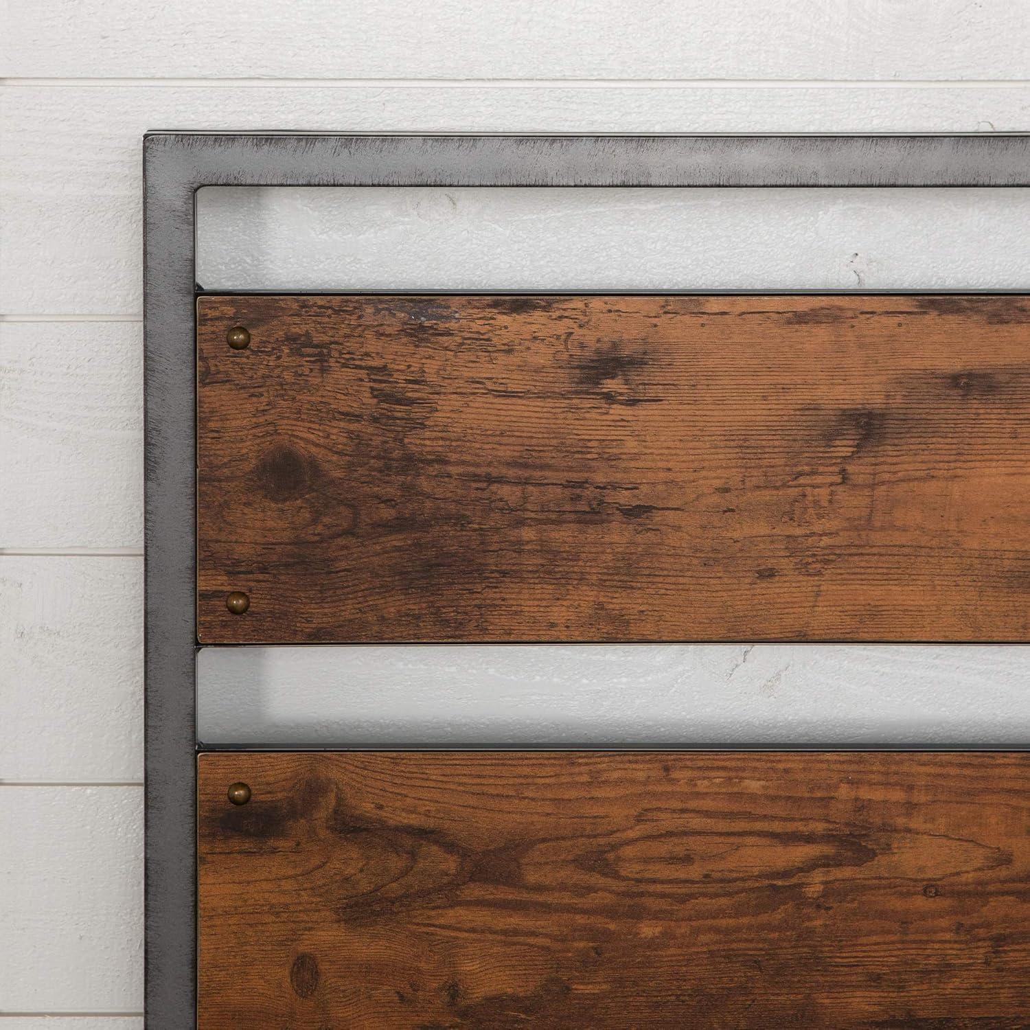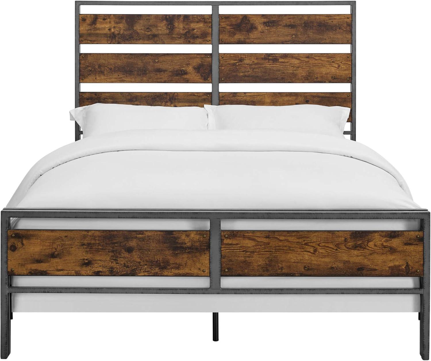 Walker Edison Wood Plank Metal Queen Size Bed Frame Bedroom Headboard Footboard Bed Frame Bedroom, Queen, Reclaimed Wood(Reclaimed Wood)