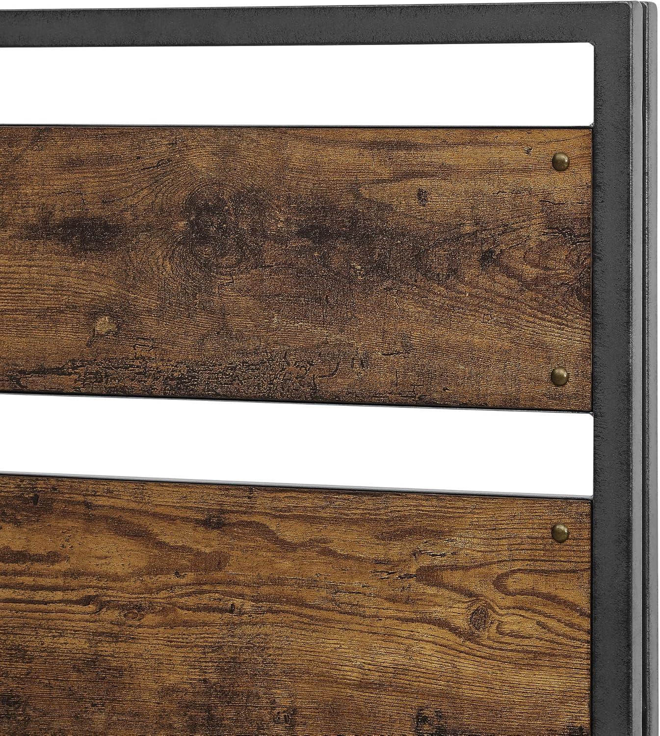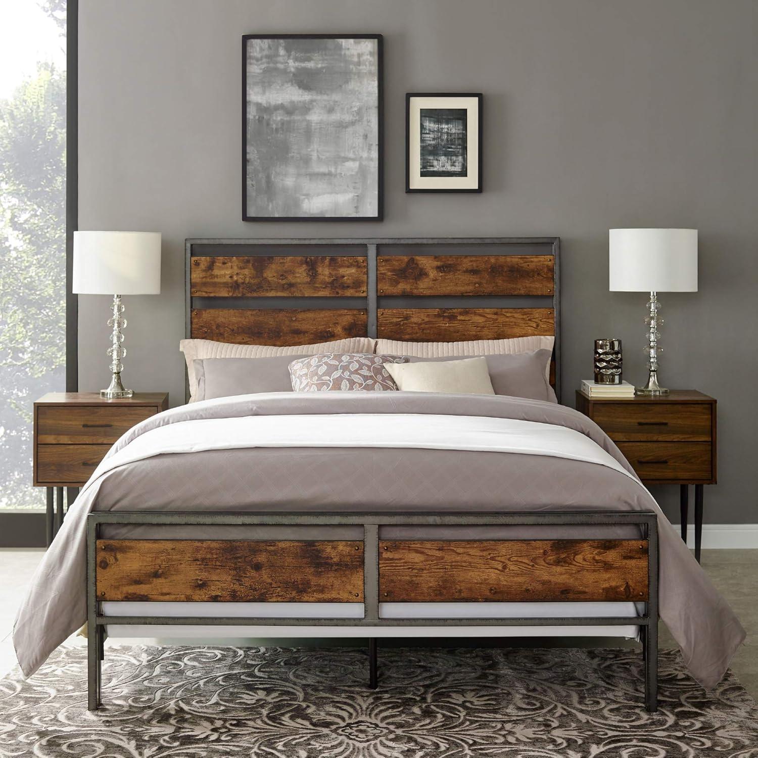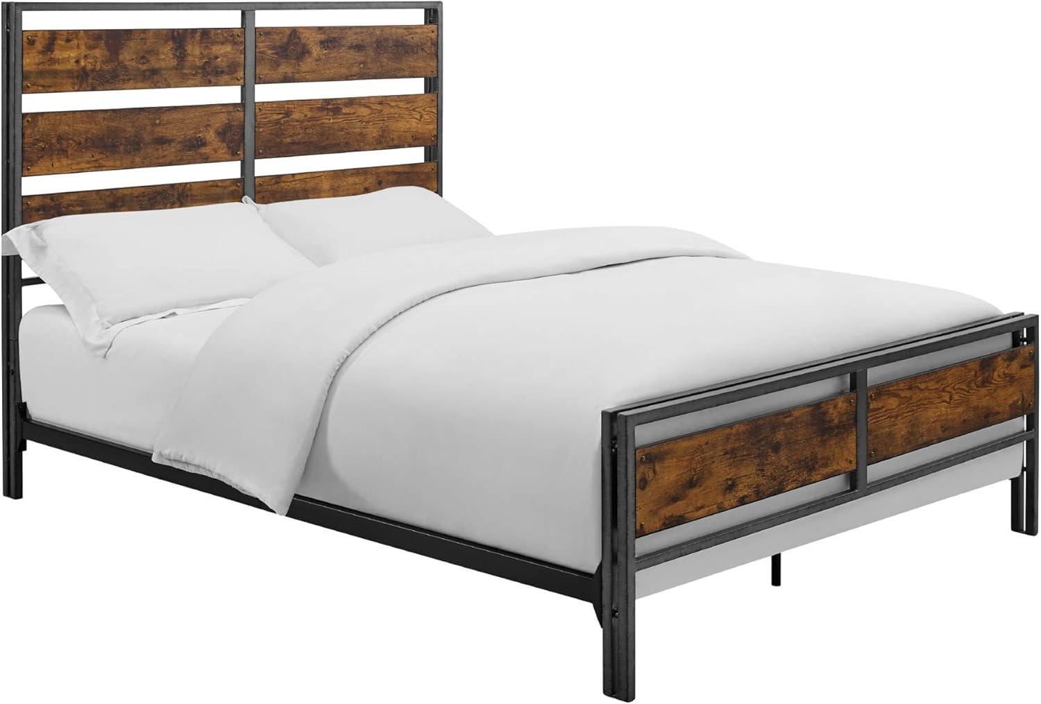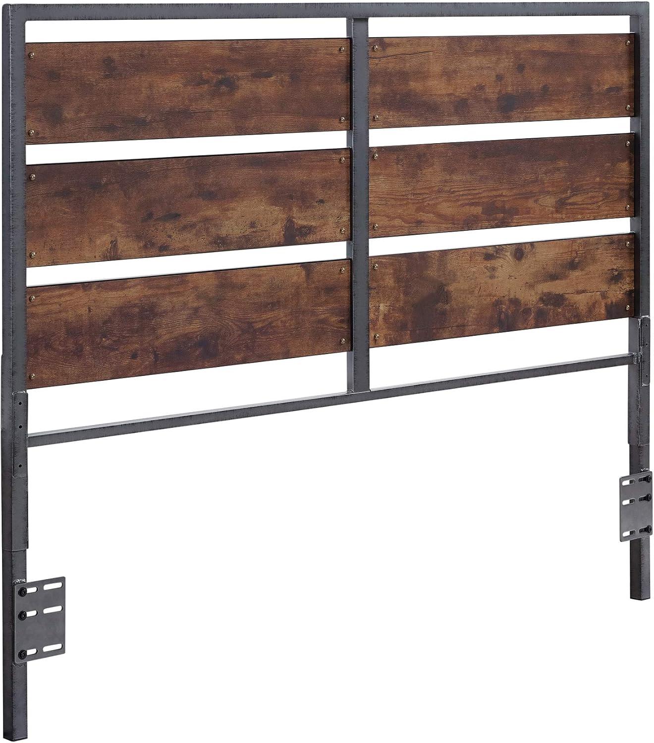 Walker Edison Wood Plank Metal Queen Size Bed Frame Bedroom Headboard Footboard Bed Frame Bedroom, Queen, Reclaimed Wood(Reclaimed Wood)
