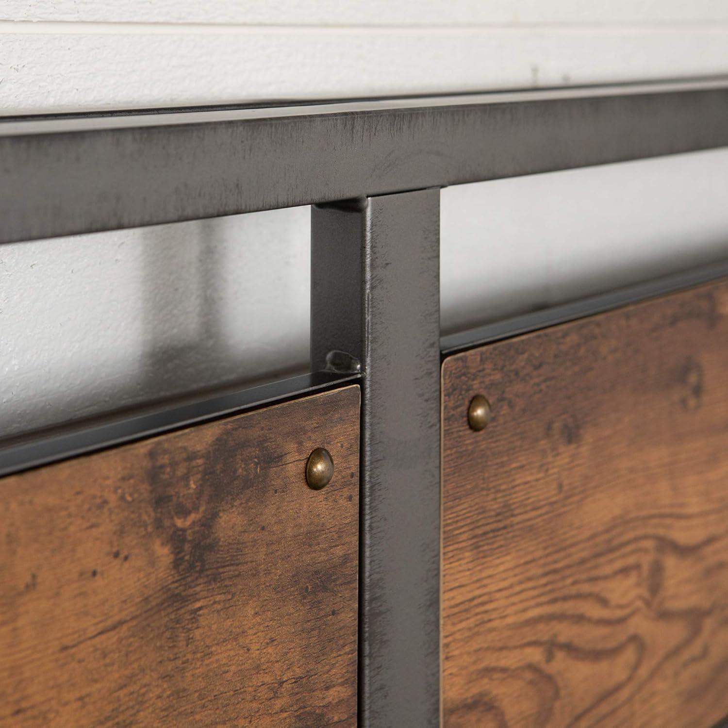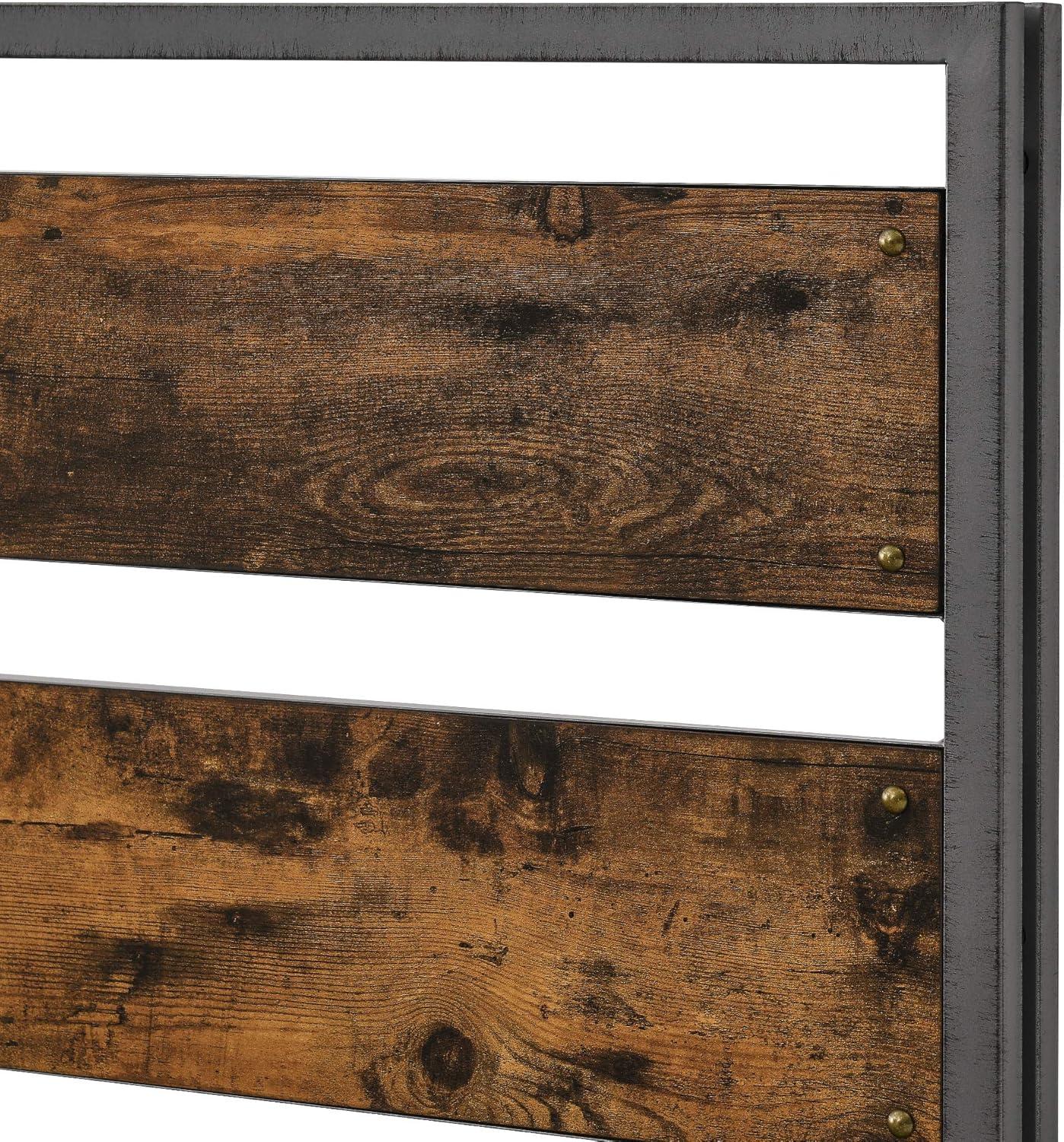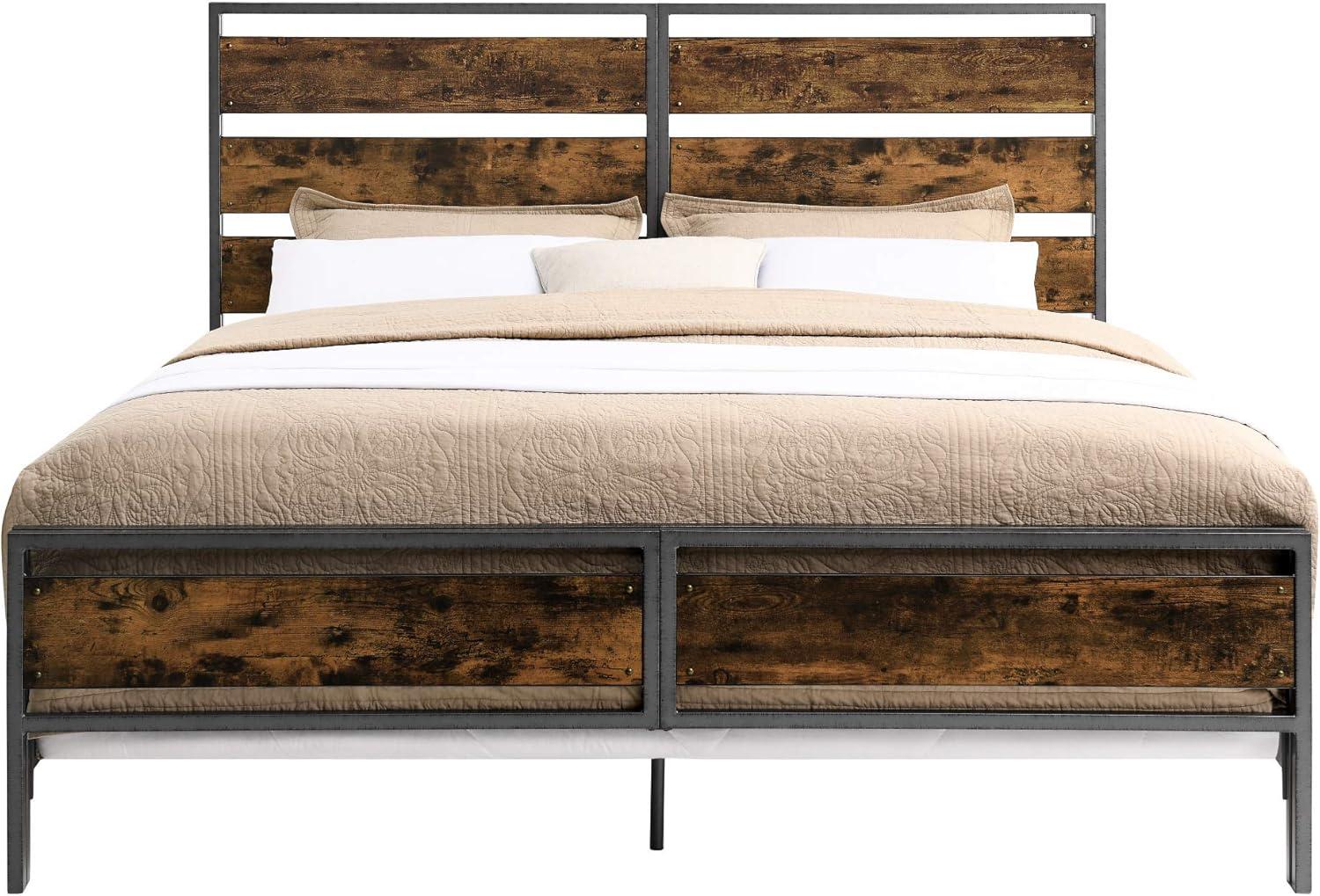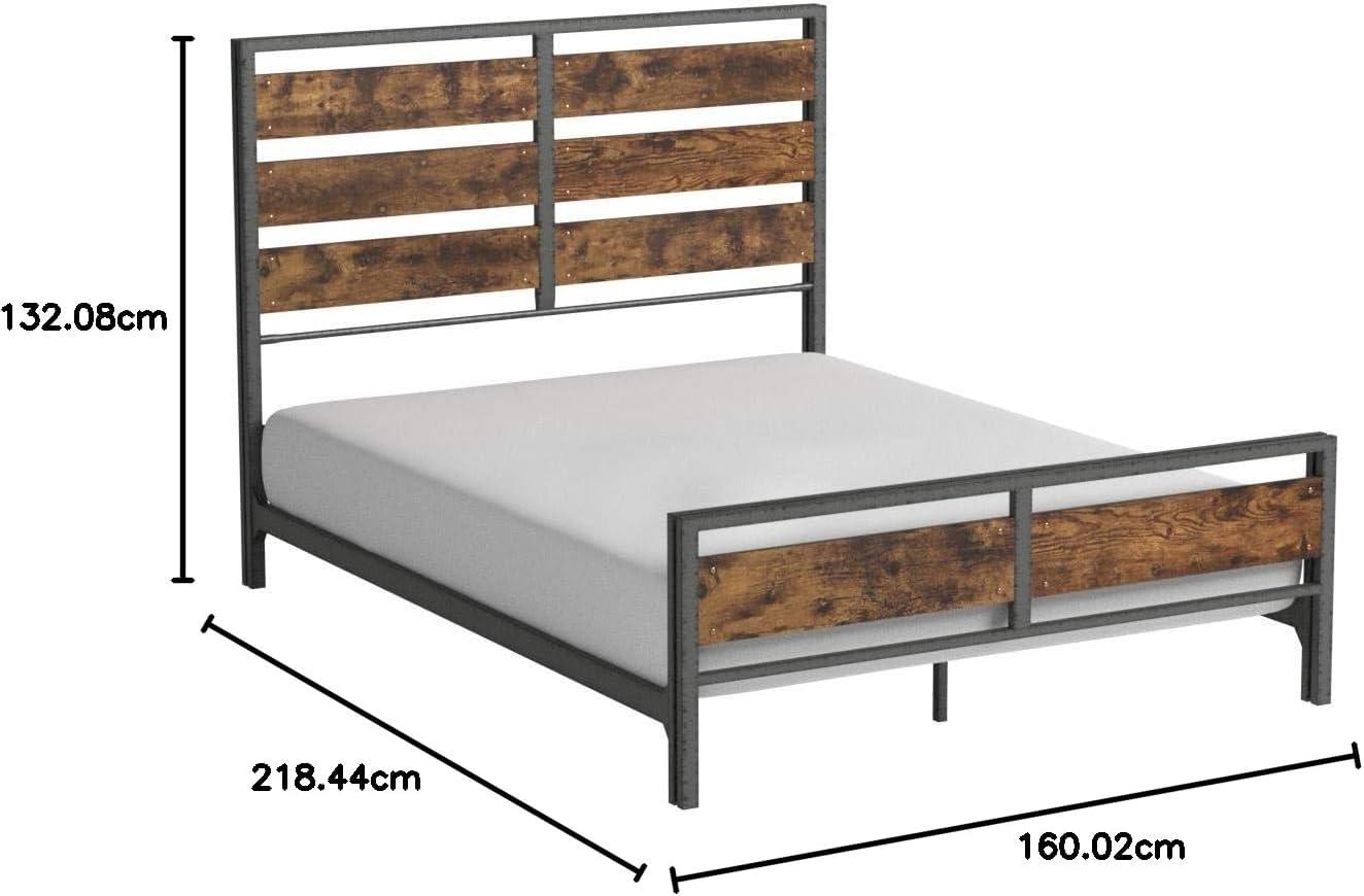 Walker Edison Wood Plank Metal Queen Size Bed Frame Bedroom Headboard Footboard Bed Frame Bedroom, Queen, Reclaimed Wood(Reclaimed Wood)