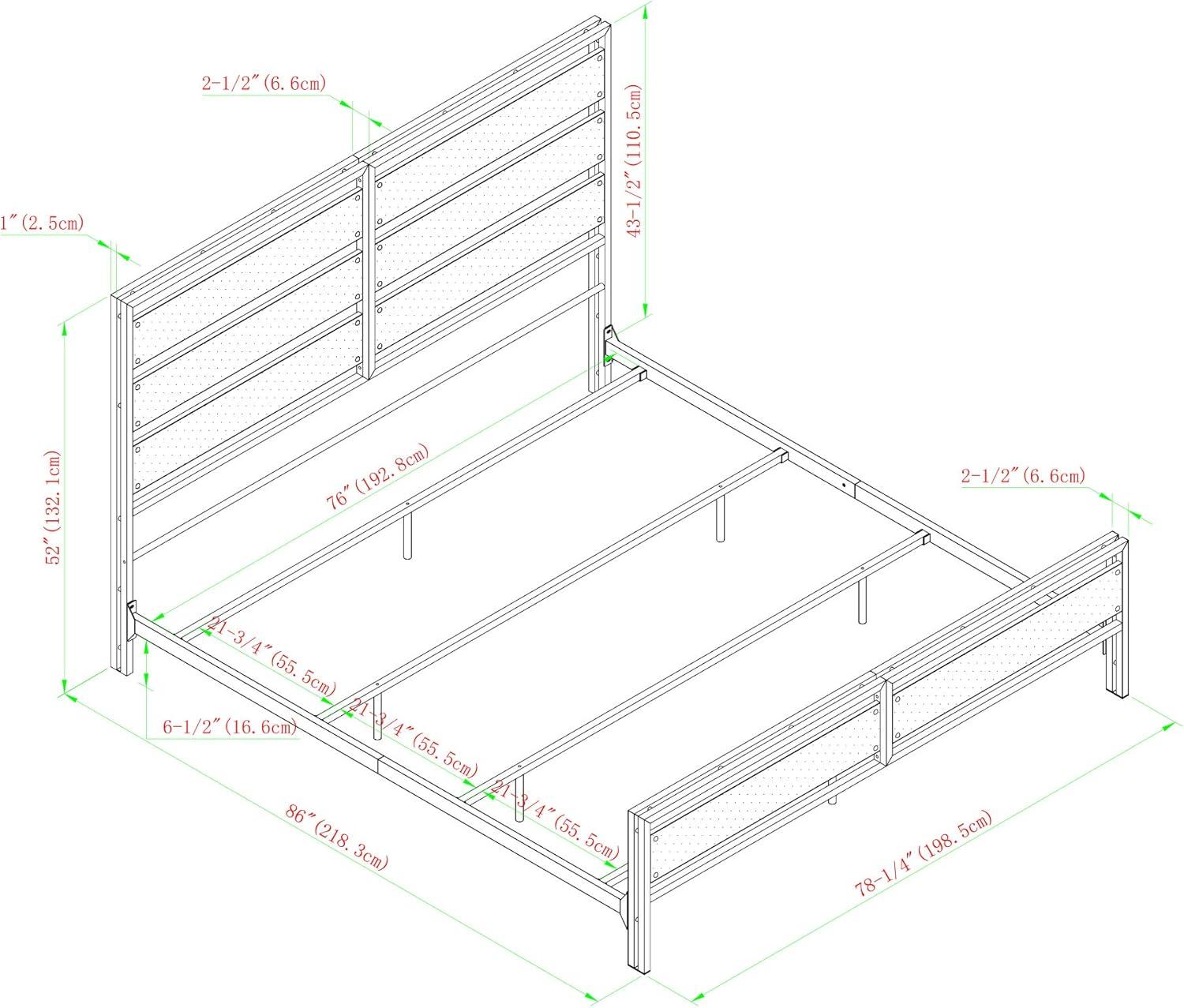 Make a statement with this rustic farmhouse style queen bed frame, it is the perfect accent for any bedroom in your home. Its sturdy construction of powder coated metal and engineered wood is practical, yet stylish. Features a textured metal finish for a distinct industrial look that will add volumes to your bedroom’s ambiance. Includes headboard, footboard, and rails for a complete set.
